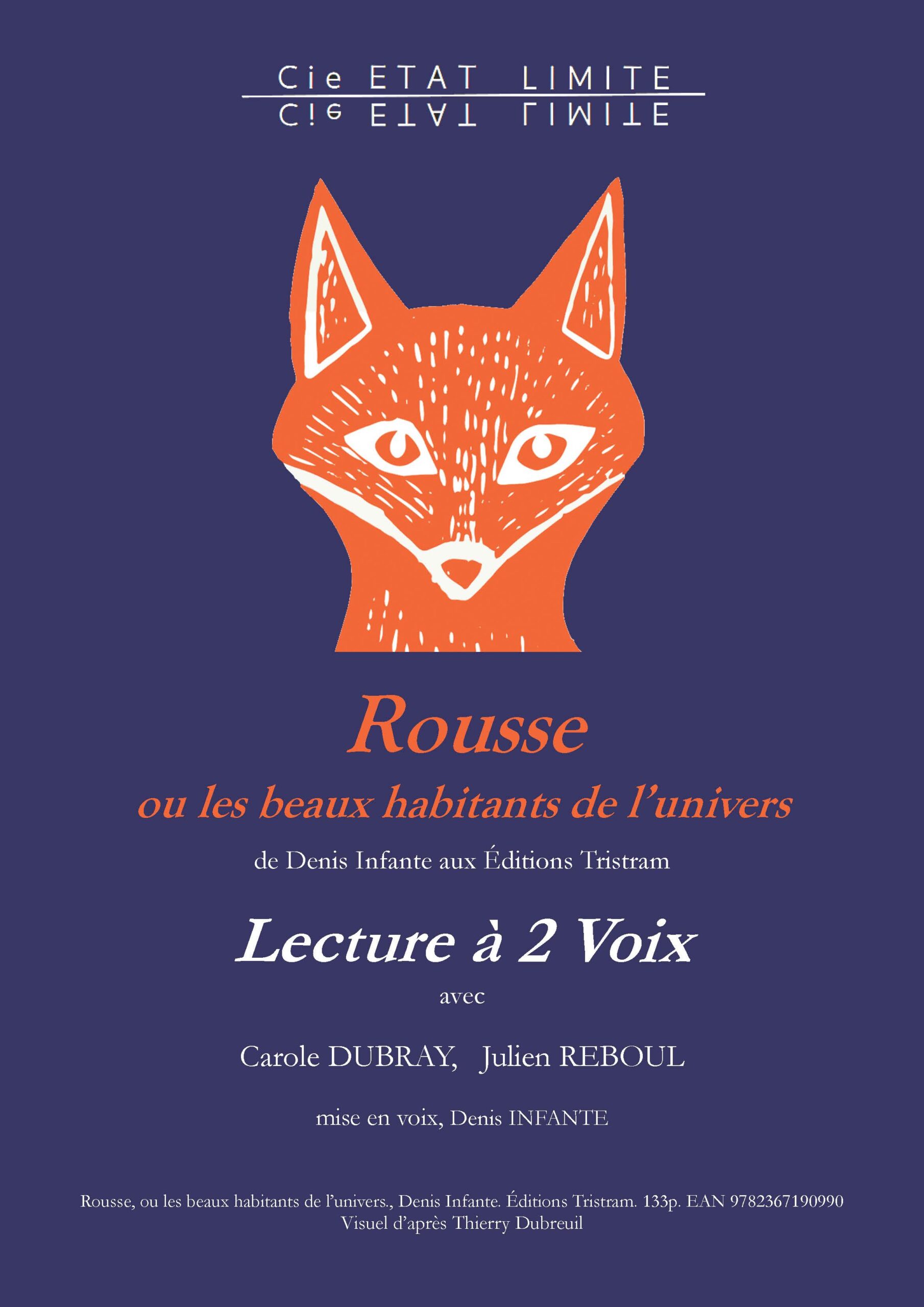 Sur une mise en lecture et une découpe ciselée de l’auteur Denis Infante, les comédiens de la Cie État Limite sortent du bois pour mieux vous y faire entrer. A partir du Bois de Chet, ils viennent attraper les auditeurs, les spectateurs dans une langue envoûtante. En route dans les pas singuliers de Rousse et les beaux habitants de l’univers…